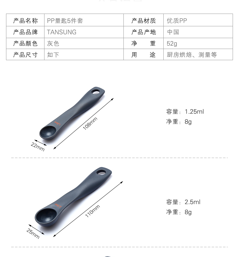 型号-106-PP量匙5件套